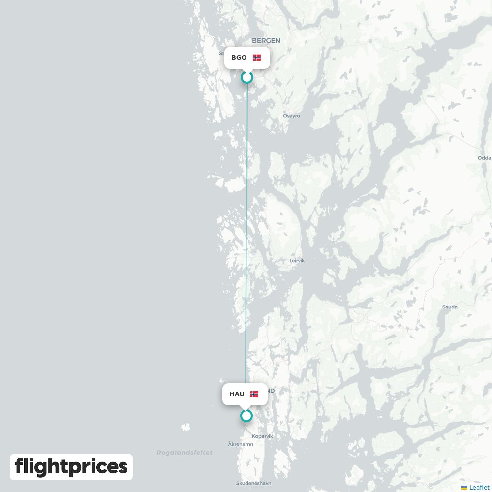 Et raskt overblikk over priser på Bergen (BGO) til Haugesund (HAU) — laveste og typiske nivåer, prisintervall, billigste måneder og ukedager, flyselskapene på ruten og vanlig reisetid.