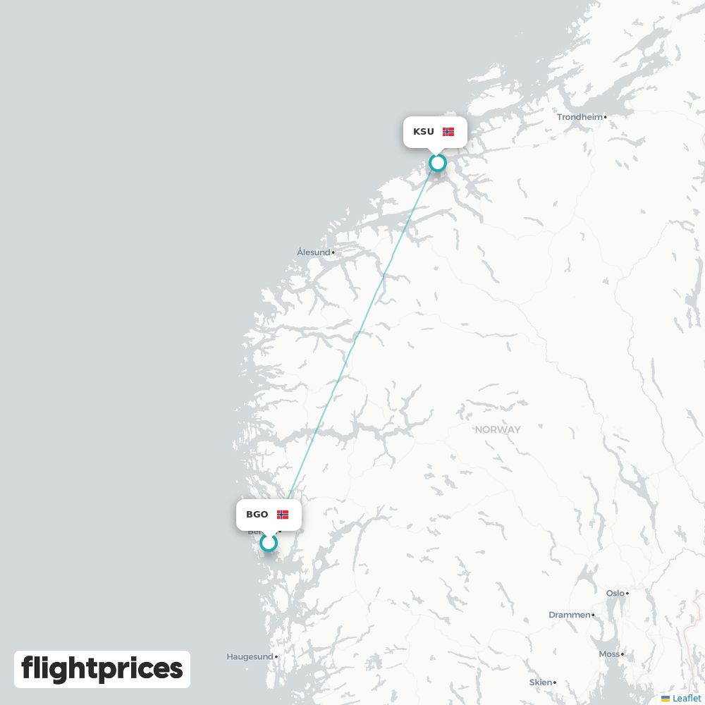Et raskt overblikk over priser på Bergen (BGO) til Kristiansund (KSU) — laveste og typiske nivåer, prisintervall, billigste måneder og ukedager, flyselskapene på ruten og vanlig reisetid.