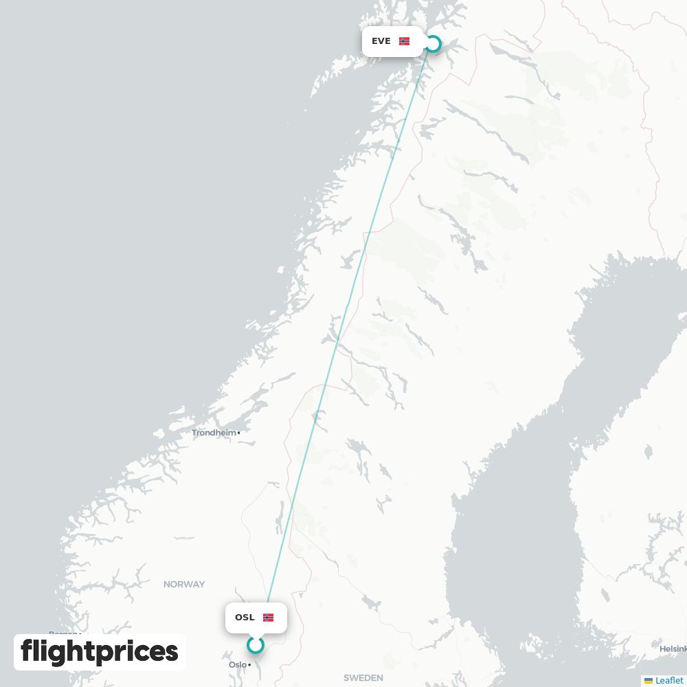 Et raskt overblikk over priser på Oslo (OSL) til Narvik (EVE) — laveste og typiske nivåer, prisintervall, billigste måneder og ukedager, flyselskapene på ruten og vanlig reisetid.