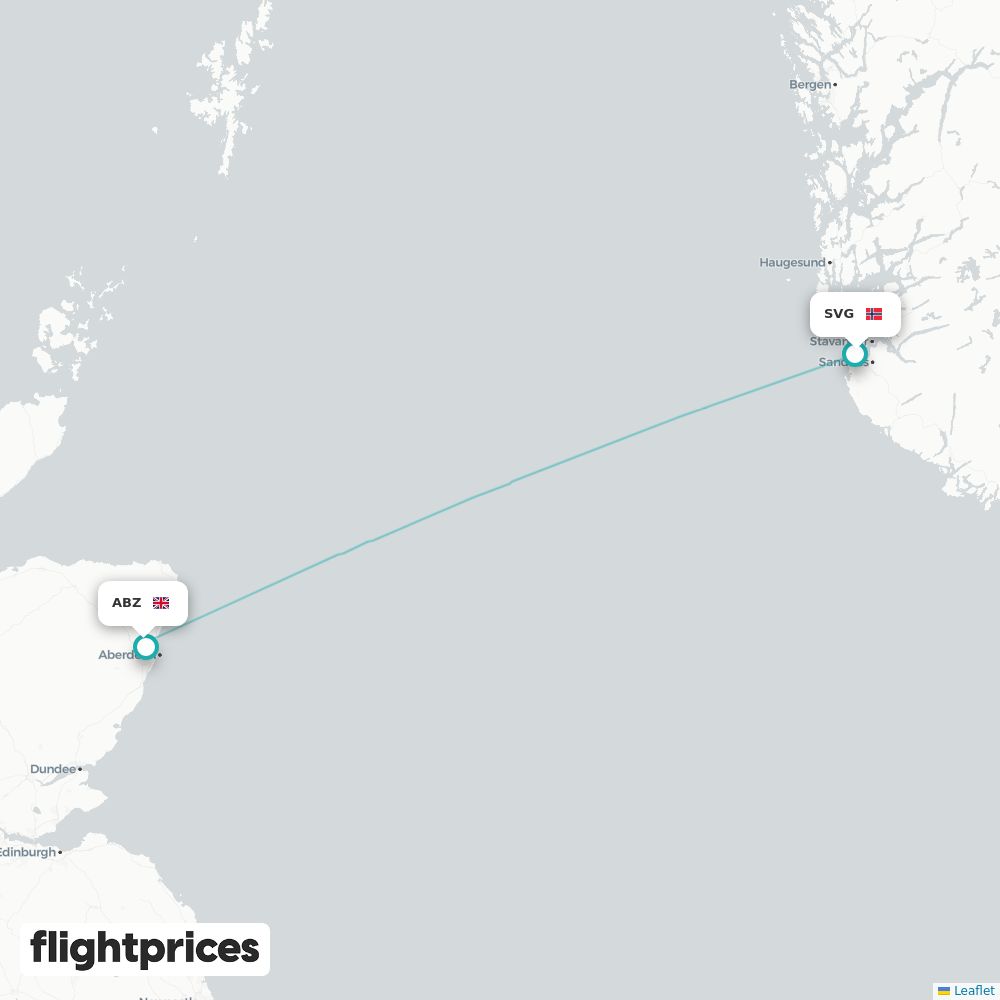 Et raskt overblikk over priser på Stavanger (SVG) til Aberdeen (ABZ) — laveste og typiske nivåer, prisintervall, billigste måneder og ukedager, flyselskapene på ruten og vanlig reisetid fra Norge til Storbritannia.