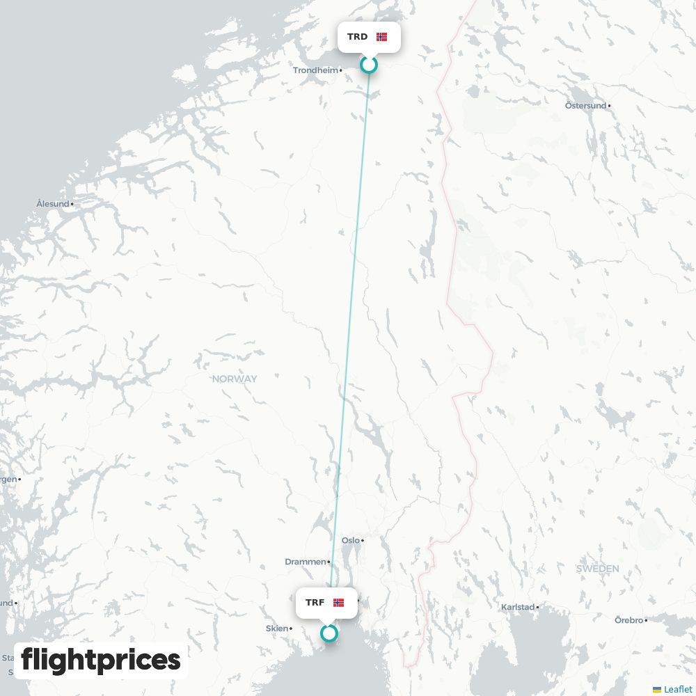 Et raskt overblikk over priser på Trondheim (TRD) til Oslo (TRF) — laveste og typiske nivåer, prisintervall, billigste måneder og ukedager, flyselskapene på ruten og vanlig reisetid.